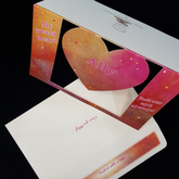 A beautiful large card featuring a cut out heart that swings freely in a frame. Tell someone you love them. Choose a sentiment for the left side, place the name on the swinging heart and choose another sentiment on the right.