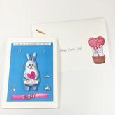You can customise the text on the heart, choose a sentiment on top of the card, choose an occasion and place the recipients name on the banner.